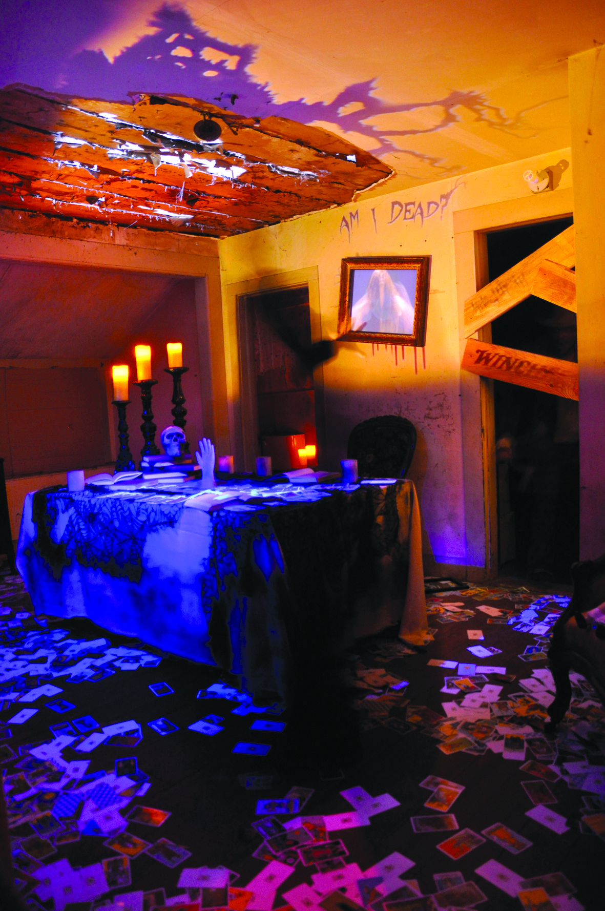 The Winchester Mystery House was one of the first major haunted attractions to put our products to the test. A mix of Precision Z spotlights in various colors  and DarkBox Flickers were used to bring life to the scenery.